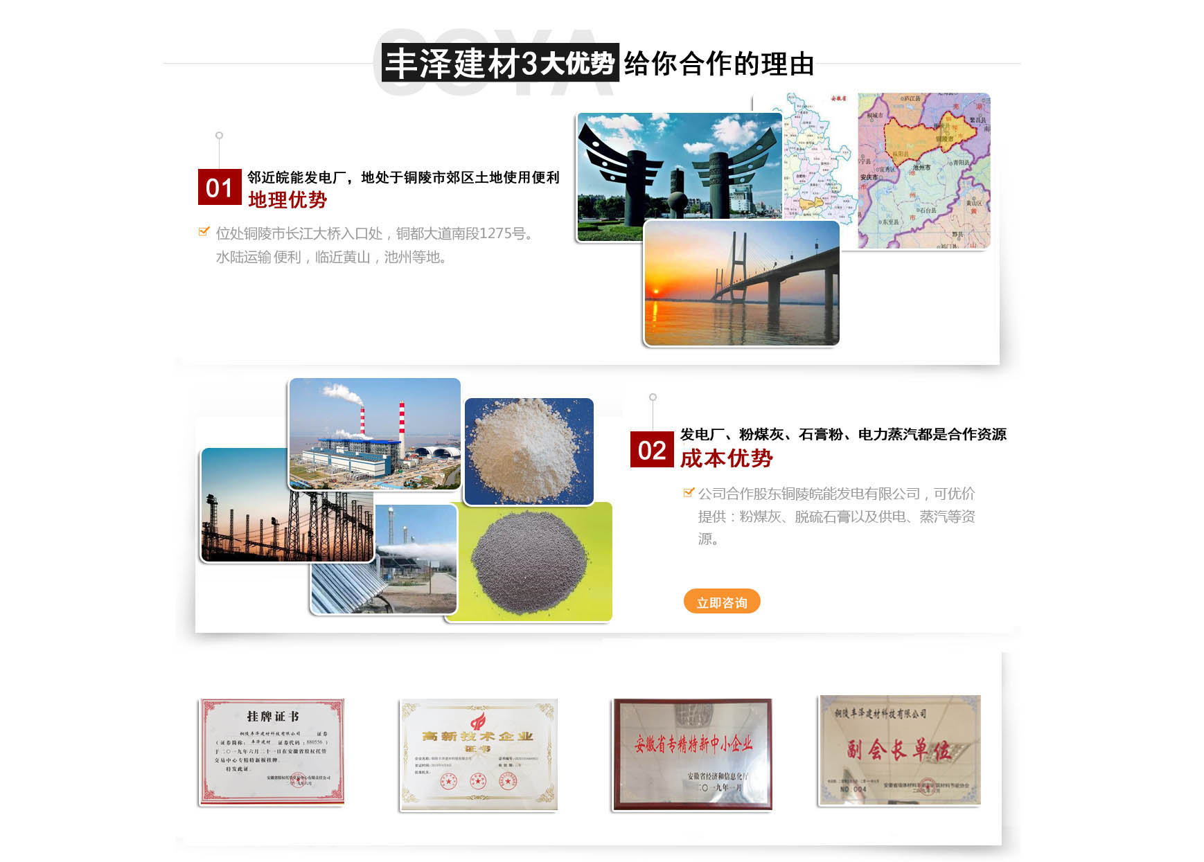銅陵豐澤建材科技有限公司成立于2007年2月,坐落于銅都大道南段,占地4萬平方米,公司注冊資金1000萬元,現(xiàn)有職工百余人,是一家與皖能發(fā)電公司合作,專業(yè)從事電廠粉煤灰開發(fā)利用的高新科技企業(yè),現(xiàn)擁有一條年產(chǎn)30萬立方米蒸壓加氣混凝土全自動生產(chǎn)線。 蒸壓加氣混領土(英文名Autoclaved aerated comcrete),也稱AAC,是以砂、粉煤灰等硅質(zhì)材料和石灰、水泥等鈣質(zhì)材料為主要原料,摻加鋁粉為發(fā)氣劑,進行生產(chǎn)的新型墻體材料。是我國推廣應用最早,使用最廣泛,技術最完整的輕質(zhì)保溫墻體材料之一,自問世以來,始終方興未艾,備受推崇。